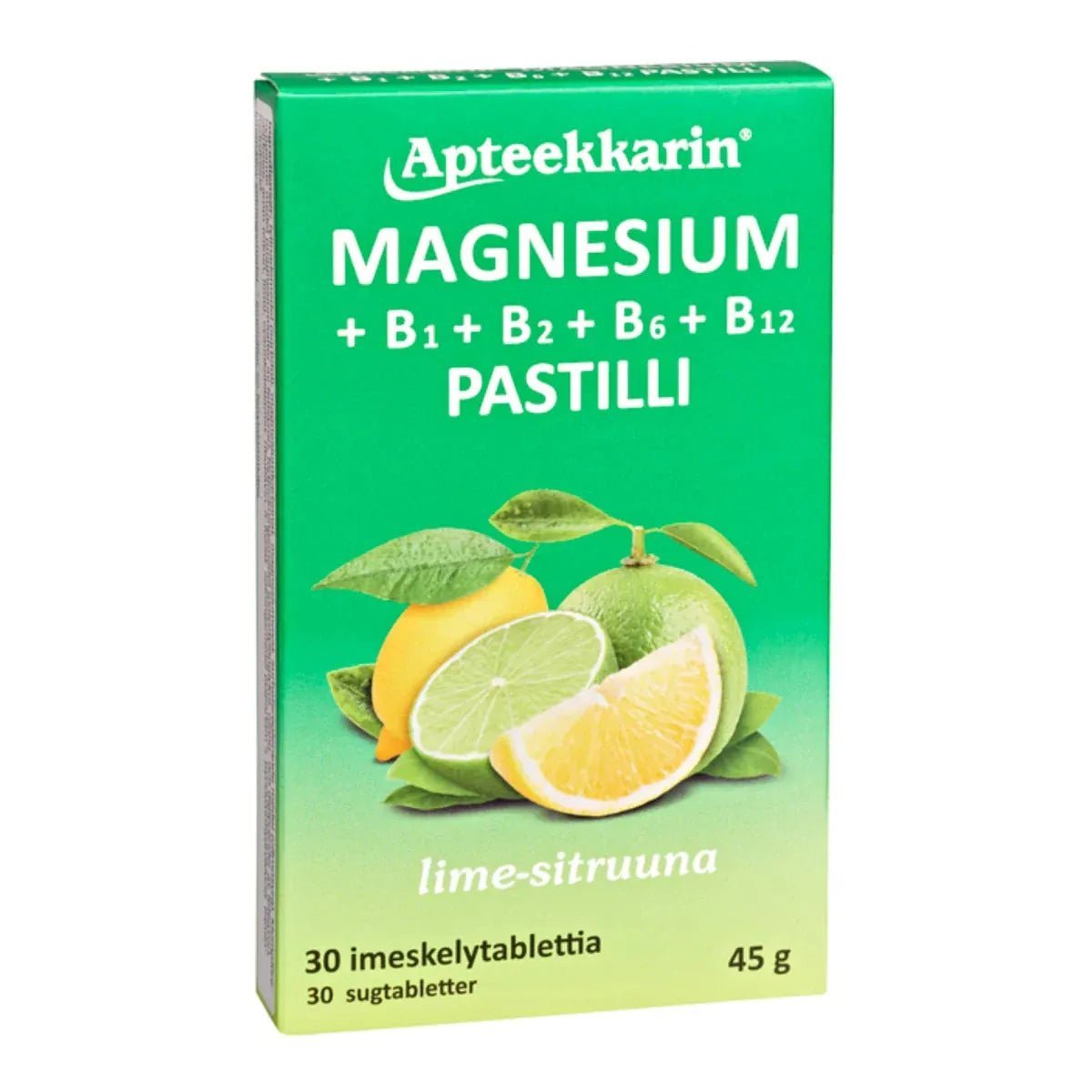 Apteekkarin Magnesium+ B1, B2, B6, B12 -Pastilli Sitruuna 30 kpl
