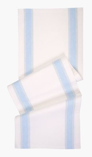 Kaunis kaitaliina 100 % puuvillasta sinisillä raidoilla.
