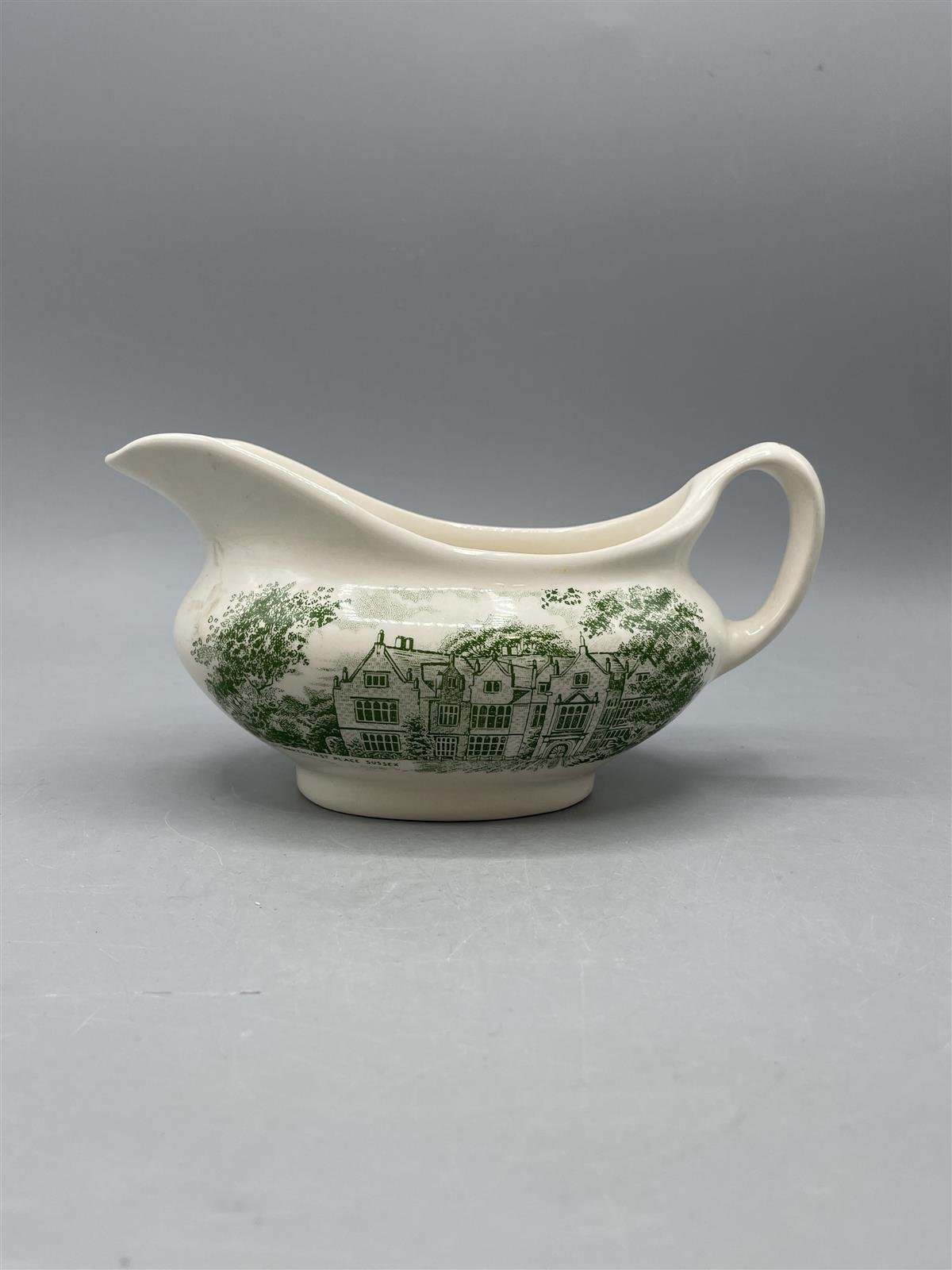 Klassinen kastikekulho, jossa on vihreä kuviointi ja teksti ’Wakehurst Place Sussex’. Valmistettu Englannissa ja se on osa English Ironstone Tablevare-sarjaa.Tyyli edustaa perinteistä englantilaista muotoilua, jossa yhdistyvät käytännöllisyys ja koristeellisuus. Ironstone-astiat ovat tunnettuja kestävyydestään ja kauniista kuvioistaan.Kunto on hyvä, mutta kulhossa on pieniä käytön jälkiä.