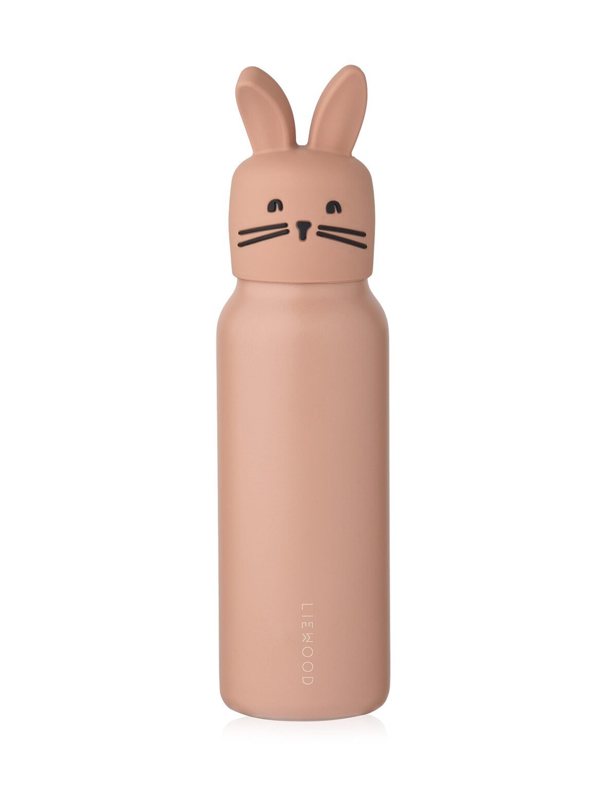 Tämä liewood-vesipullo on suunniteltu lasten tarpeisiin. Pullon ainutlaatuinen kaniaiheinen korkki tekee juomisesta hauskaa ja houkuttelevaa. Valmistettu kierrätetystä ruostumattomasta teräksestä. Pullo on kestävä ja pitkäikäinen. Silikonitiivisteet takaavat tiiviyden ja estävät vuodot. Vesipullo on täydellinen valinta aktiiviseen arkeen ja retkille.