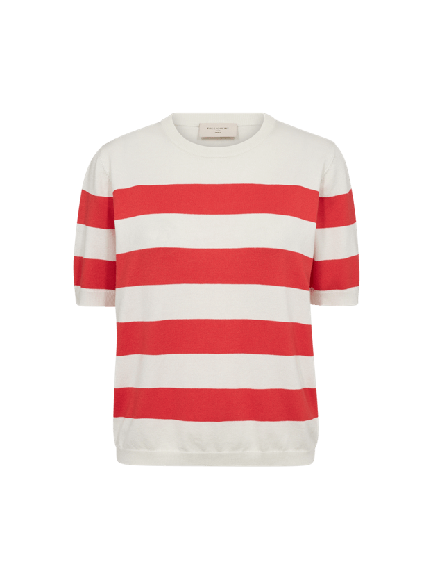 Freequent-neulepusero pehmeää, ohutta materiaalia, jossa on leveä raidallinen kuvio. Neulepuserossa on yksinkertainen siluetti, lyhyet hihat, pyöristetty pääntie, resori ja tyylikäs, rento malli.Lyhyet hihatPyöreä pääntieResoriRento istuvuusHieno neulottuRaidallinen