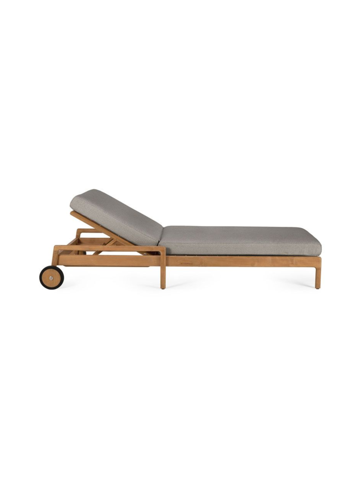 Ethnicraft-merkin jack aurinkotuoli terassille ja ulkokäyttöön täydellisellä elegantilla, upealla muotoilukielellä pehmeästi pyöristetyillä muodoilla ja korkealaatuisella materiaalilla. Valmistettu umpitiikistä ja siinä on säädettävä selkänoja parhaan mukavuuden takaamiseksi. Tuolia on helppo siirtää isojen pyörien avulla.hinta sisältää mocha quick dry foam pehmusteen.tuotteen mitat: pituus 216cm leveys 84cm korkeus 34cm