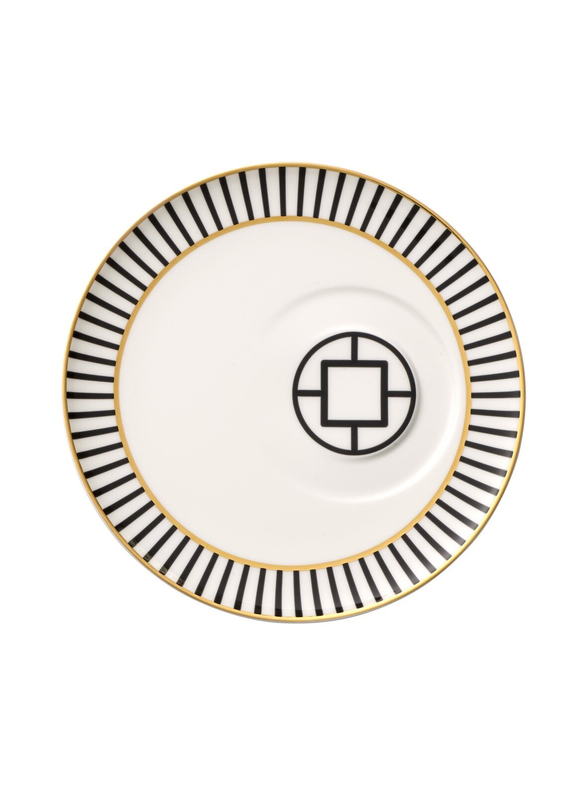 Villeroy & bochin metrochic-astiasarjaan kuuluvaa aluslautasta tyylittää barry goralnickin suunnittelema geometrinen kuvio, joka tuo jokaiseen kattaukseen klassista eleganssia. Inglaze gold -teknologian ansiosta kuvio kestää hyvin käyttöä ja pesua.
