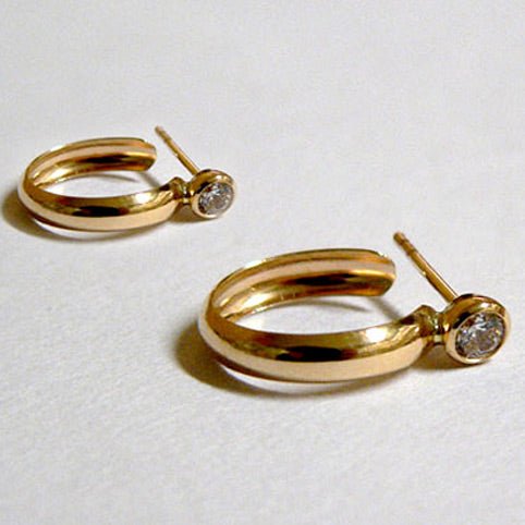 Kultaiset korvarenkaat tappikiinnityksellä Materiaali: 14k keltakultaHalkaisija: 14 mmLeveys: 3 mm, kivi 3,5 mm