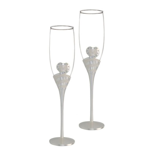 Samppanjalasit hopeoiduilla metallijaloilla ja sydänkoristeilla, 2 kpl Kauniit samppanjalasit kruunaavat tärkeän kilistelyhetken. Laseissa on hopeitu, metallijalka ja sydänkoriste. Lasin korkeus on 26 cm. Pakkauksessa on kaksi lasia.Korkeus: 26 cmMateriaali: hopeitu metalli, lasiTuotenumero: 078899