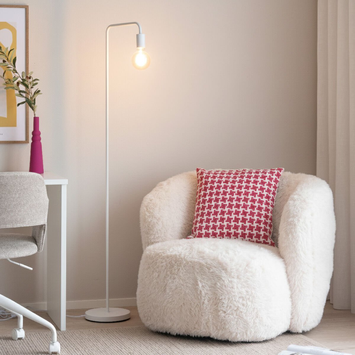 Nykyaikainen ja minimalistinen Trio Diallo lattiavalaisimessa on lankamaisen ohut varsi, joka korostaa paljaaksi jäävää lamppua. Suosittelemme valitsemaan koristeellisen LED-lampun, jota vaihtamalla valaisimenkin ilme muuttuu. Sopii hyvin esimerkiksi lukunurkkaan tai toimistoon. Osta lisäksi tuotteista löydät muutamia näyttäviä lamppuja. Valaisimessa pistotulpallinen liitosjohto, jossa on/off kytkin.