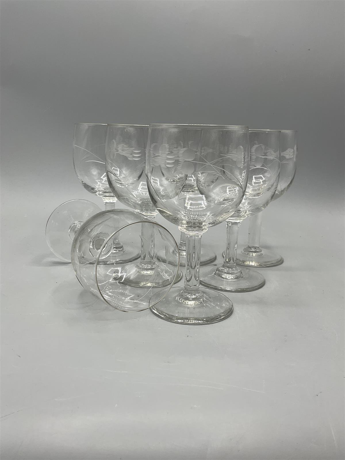 Kirkkaat viinilasit, joissa on hiottu koristekuvio 7kpl.
